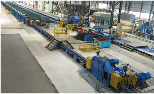 晉鋼高棒生產線由中冶京誠負責EPC總承包,軋線采用全連續高速無扭軋制,最大軋制速度45m/s。該生產線定位于建筑用材小規格棒材,生產規格為∅10mm~∅16mm的螺紋鋼,配備了中冶京誠新一代CMM-I系列模塊化230精軋機機組、高速伺服倍尺飛剪、夾尾器及轉轂系統,粗中區采用第五代高剛度短應力線軋機,具備終軋速度快、產量高、成材率高、產品表面質量高、產品尺寸公差控制精確等優點。