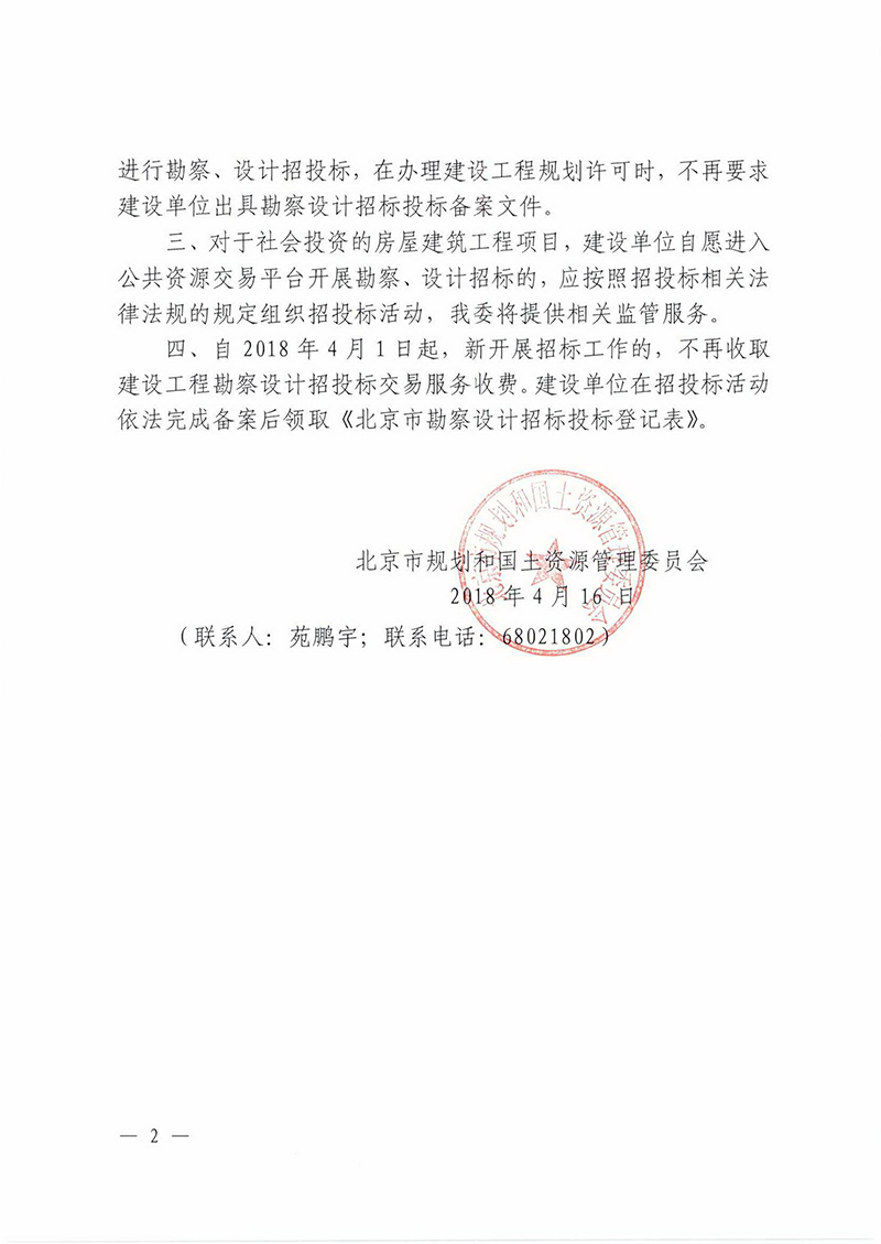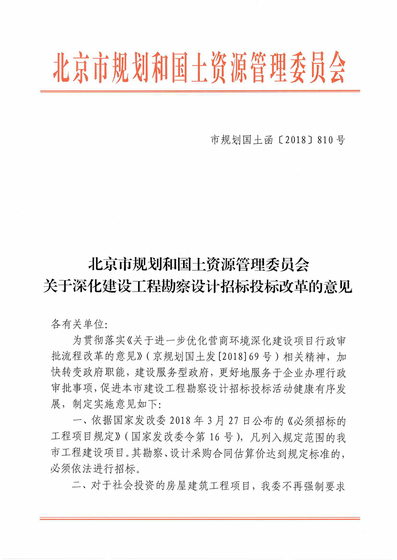 為落實《關于進一步優化營商環境深化建設項目行政審批流程改革的意見》(京規劃國土發[2018]69號)相關精神,加快轉變政府職能,建設服務型政府,切實減輕企業負擔,更好地服務于企業辦理行政審批事項,市規劃國土委于近日下發《關于深化建設工程勘察設計招標投標改革的意見》(京規劃國土函[2018]810號),明確對于社會投資的房屋建筑工程項目不再強制要求進行勘察、設計招投標,同時在辦理建設工程規劃許可時,不再要求建設單位出具勘察設計招標投標備案文件;2018年4月1日起,對于新開展招標工作的,不再收取建設工程勘察設計招投標交易服務費,估算每年將減少收費約1000萬元。