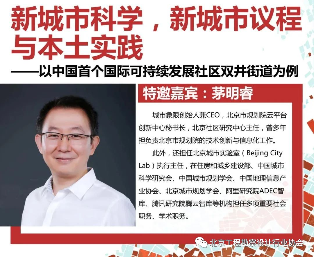 本次活動由承辦單位中國建筑設計研究院有限公司城市規劃設計研究中心總規劃師張帆主持,特邀北京城市象限科技有限公司創始人茅明睿老師帶來線上學術分享會,邀請多位嘉賓參與互動討論。