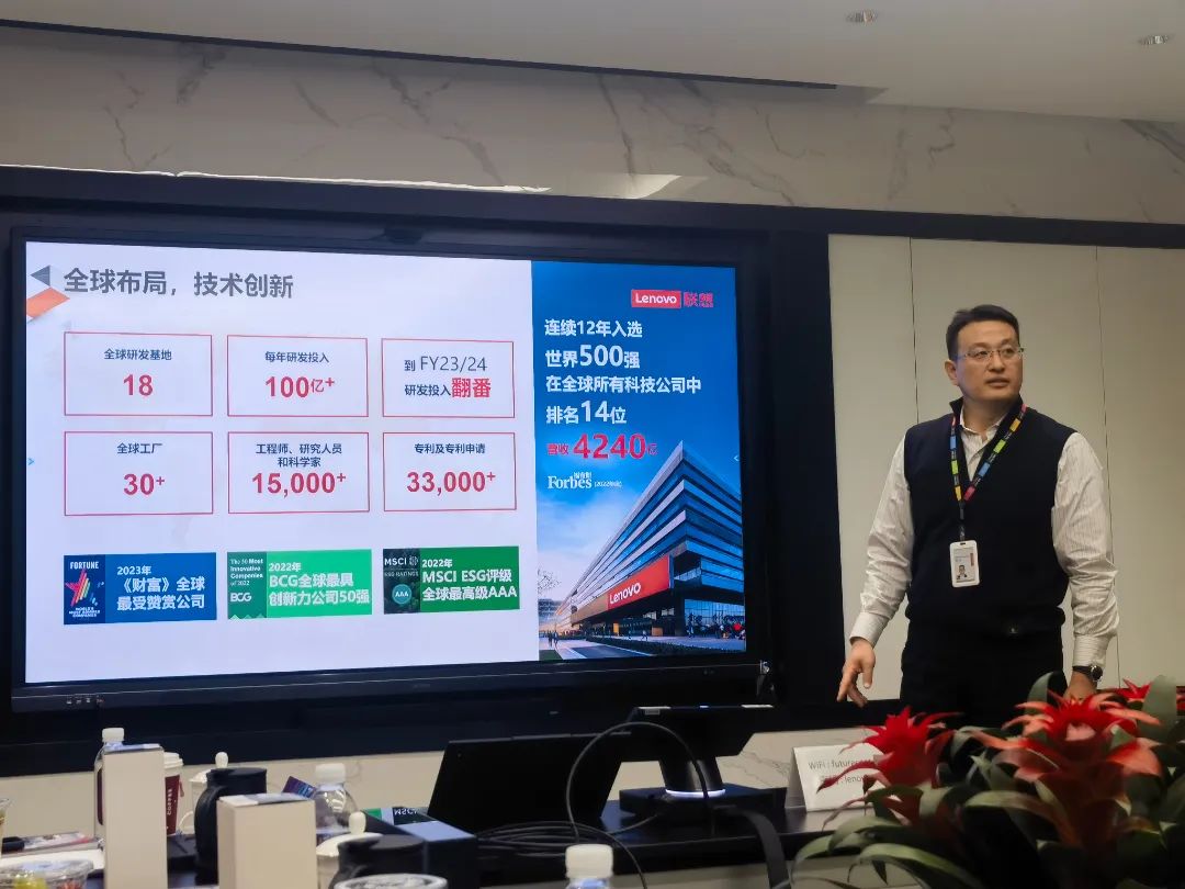 協會副秘書長王鳳琴代表協會,感謝聯想集團的熱情接待和詳細講解。她表示,本次活動更為直觀而細化地為我們呈現了聯想集團的產品與服務,希望本次活動作為各方交流合作的良好開端,今后能夠建立更為緊密的溝通機制,期待聯想集團為協會和會員單位在信息化建設、數字化轉型及行業數字科技自主創新等方面提供多層次的軟硬件產品和服務支撐。