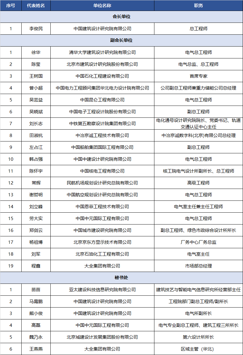 附:北京工程勘察設計協會電氣與智能化分會領導層及秘書處名單