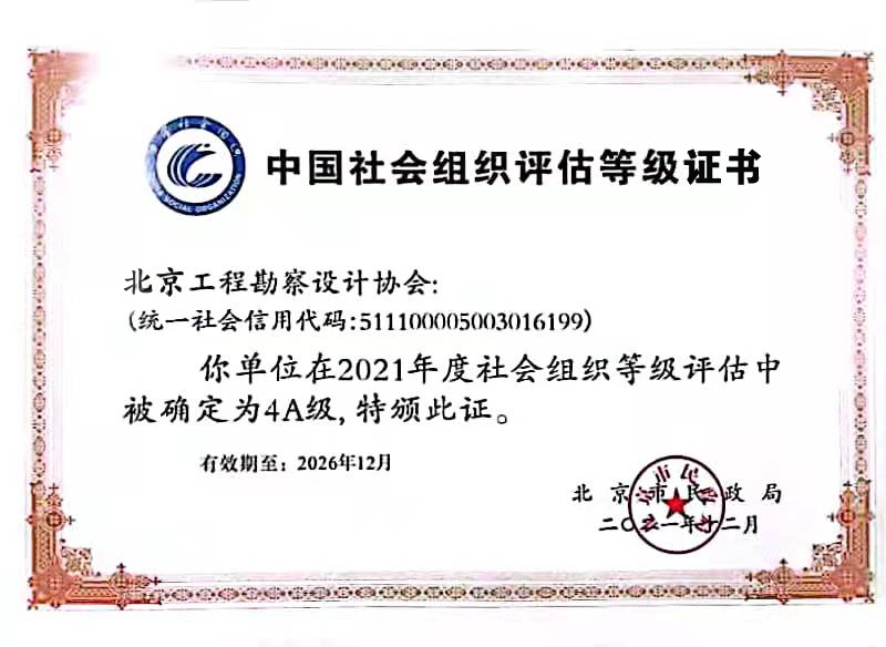 2021年度市級社會組織評估等級結(jié)果揭曉,北京工程勘察設計協(xié)會順利通過評估,第三次榮獲4A級社會組織認證。