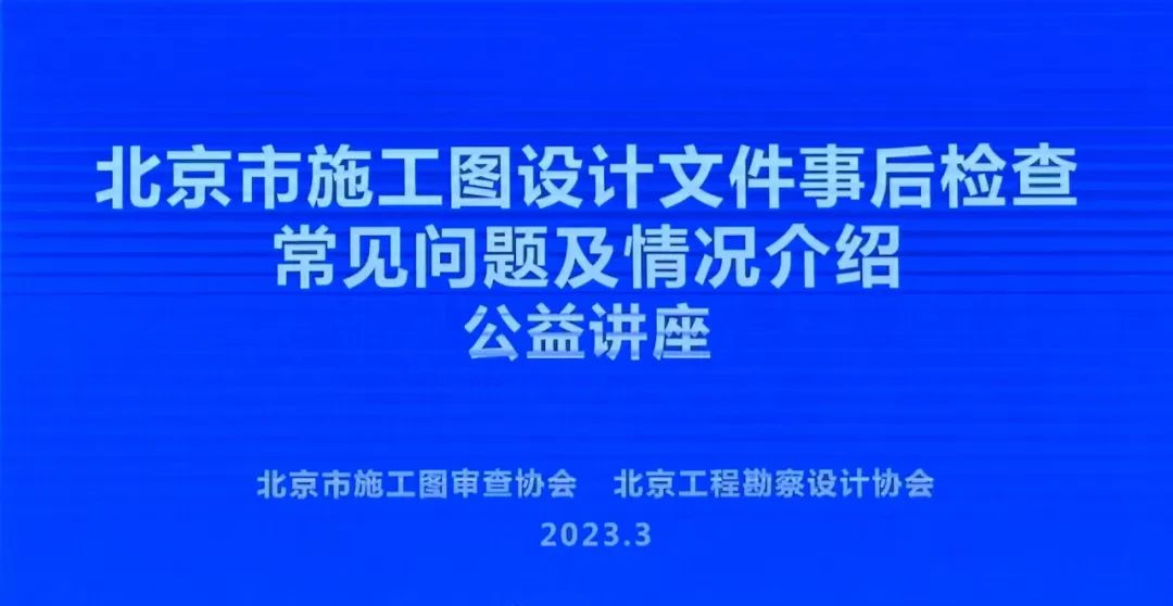 北京地區《北京市施工圖設計文件事后檢查常見問題及相關情況介紹》【2023】公益講座圓滿結束