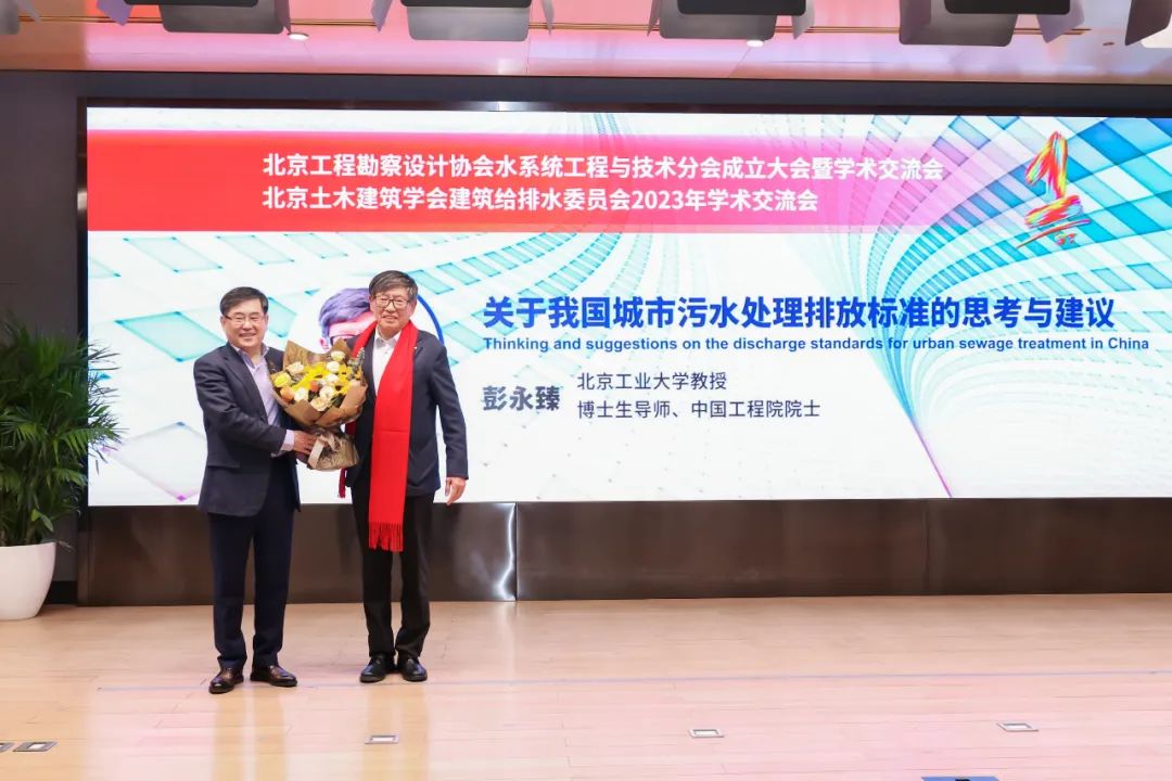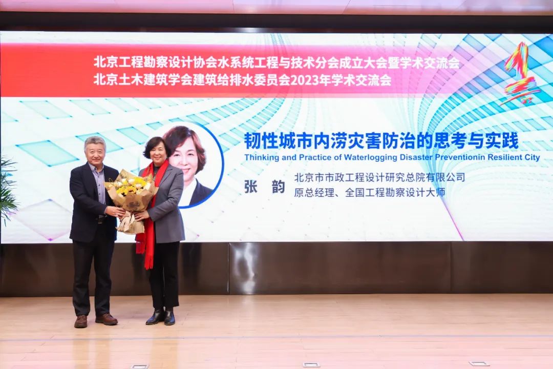 戴明華副會長宣讀了《北京工程勘察設計協會水系統工程與技術分會工作條例》,表示分會將嚴格按照條例的相關要求開展具體工作。趙鋰會長向大會做《北京工程勘察設計協會水系統工程與技術分會籌備工作報告和工作設想》,表示分會立足于北京地區,為北京的給排水行業人員提供了一個新的交流創新平臺,分會全體成員要緊密團結,高標準高質量開展各項工作,為北京市地區的建設和人才培養做出貢獻。最后,林坤平副會長宣讀《北京工程勘察設計協會水系統工程與技術分會第一次成員單位大會決議》,決議對水系統分會組織機構成員的任命、工作條例和工作報告進行了書面確認,并提交北京工程勘查設計協會辦公室備案。上午大會在歡快愉悅的氛圍中落下帷幕,所有代表進行了集體合影留念。下午,水系統分會聯合北京土木建筑學會建筑給排水委員會召開了一場盛大的學術交流會,來自北京地區設計院的200多位給排水專業人員報名參會,任南琪院士、彭永臻院士、張韻大師和趙鋰大師分別做了《城市水系數字孿生規劃與智慧管控》、《關于我國城市污水處理排放標準的思考與建議》、《韌性城市內澇災害防治的思考與實踐》、《零碳建筑水系統設計方法與應用》學術報告,提供了一場精彩紛呈的學術饕餮盛宴。