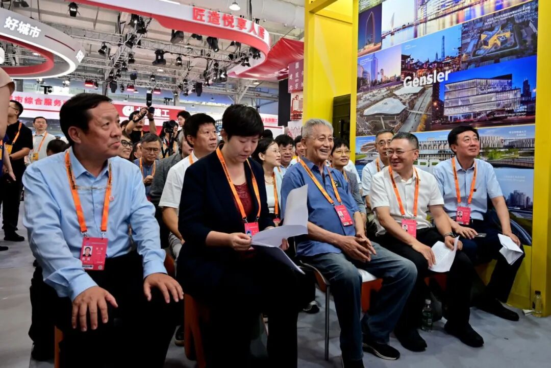 09月11日上午,第十八屆中央委員、重慶原市長、中國金融四十人論壇學術顧問黃奇帆蒞臨展區,北京建筑師學會崔愷理事長重點介紹展區“裝置藝術”上所展示的“建筑師與北京城”的歷史背景和現實意義。北京工程勘察設計協會胡頤蘅秘書長陪同介紹,展區內,各參展會員單位帶來的“硬貨”成果格外吸睛:從突破技術瓶頸的智能勘察設備,到賦能城市更新的精品設計方案,再到貼合“雙碳”目標的綠色建筑實踐,每一處展臺都以生動的呈現方式,展現勘察設計人的匠心與創新。領導不時駐足交流,詢問技術細節與項目落地情況,展區內專業氛圍與活力交織,成為服貿會工程咨詢與建筑服務專題區的“亮點打卡地”。