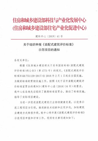 轉發《關于組織申報<裝配式建筑評價標準>示范項目的通知》