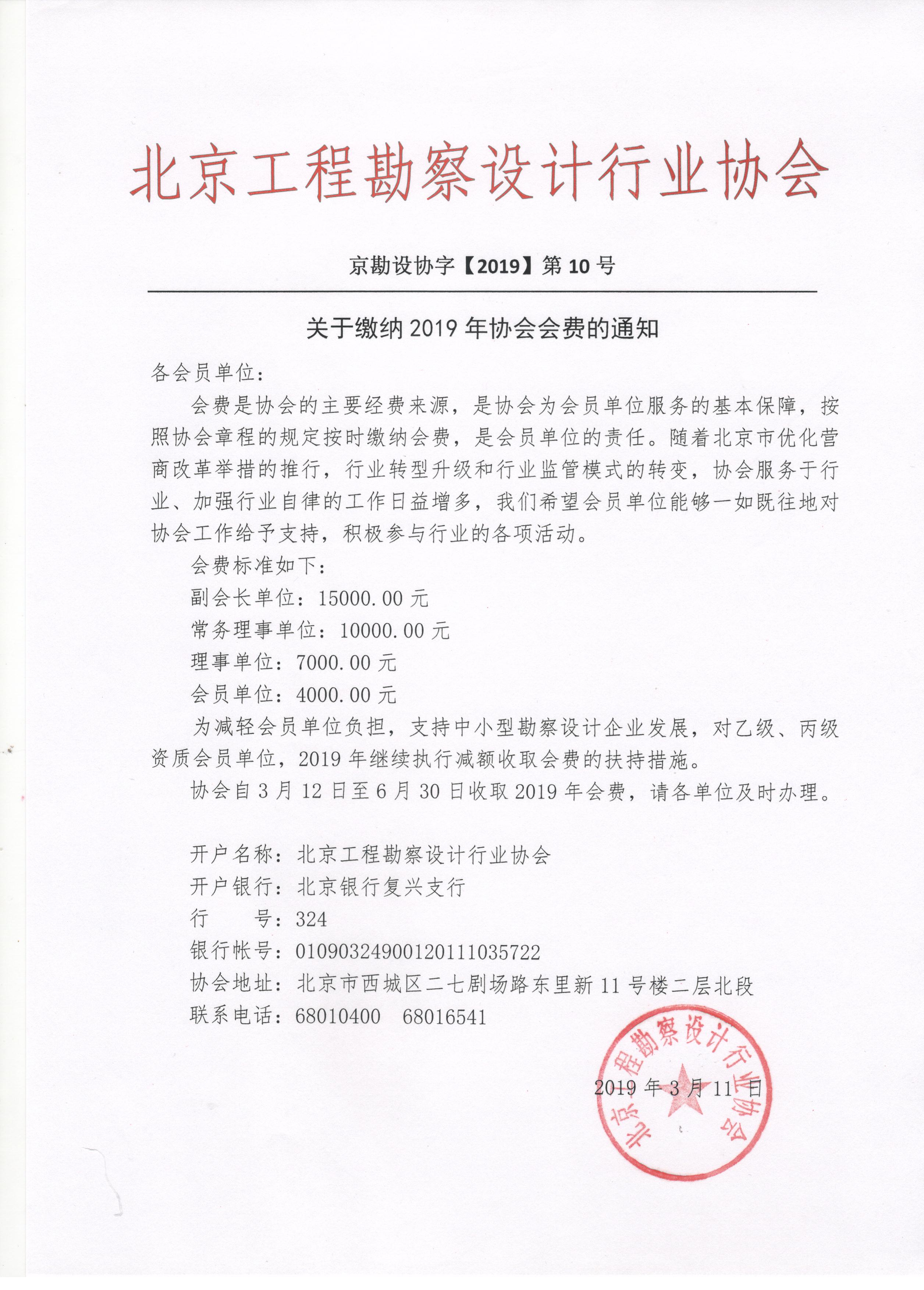 為減輕會員單位負擔,支持中小型勘察設計企業發展,對乙級、丙級資質會員單位,2019年繼續執行減額收取會費的扶持措施。