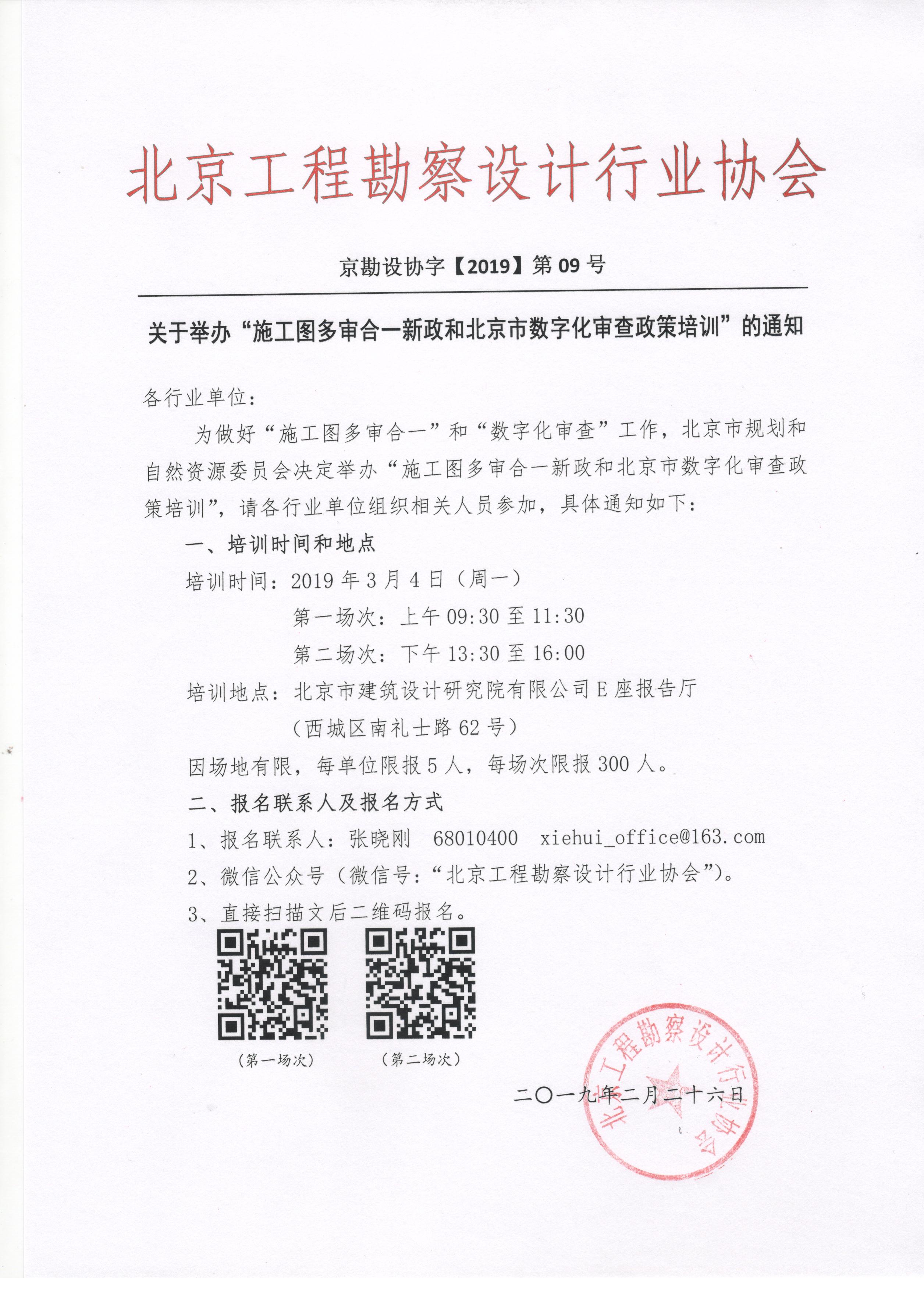 關于舉辦“施工圖多審合一新政和北京市數(shù)字化審查政策培訓”的通知