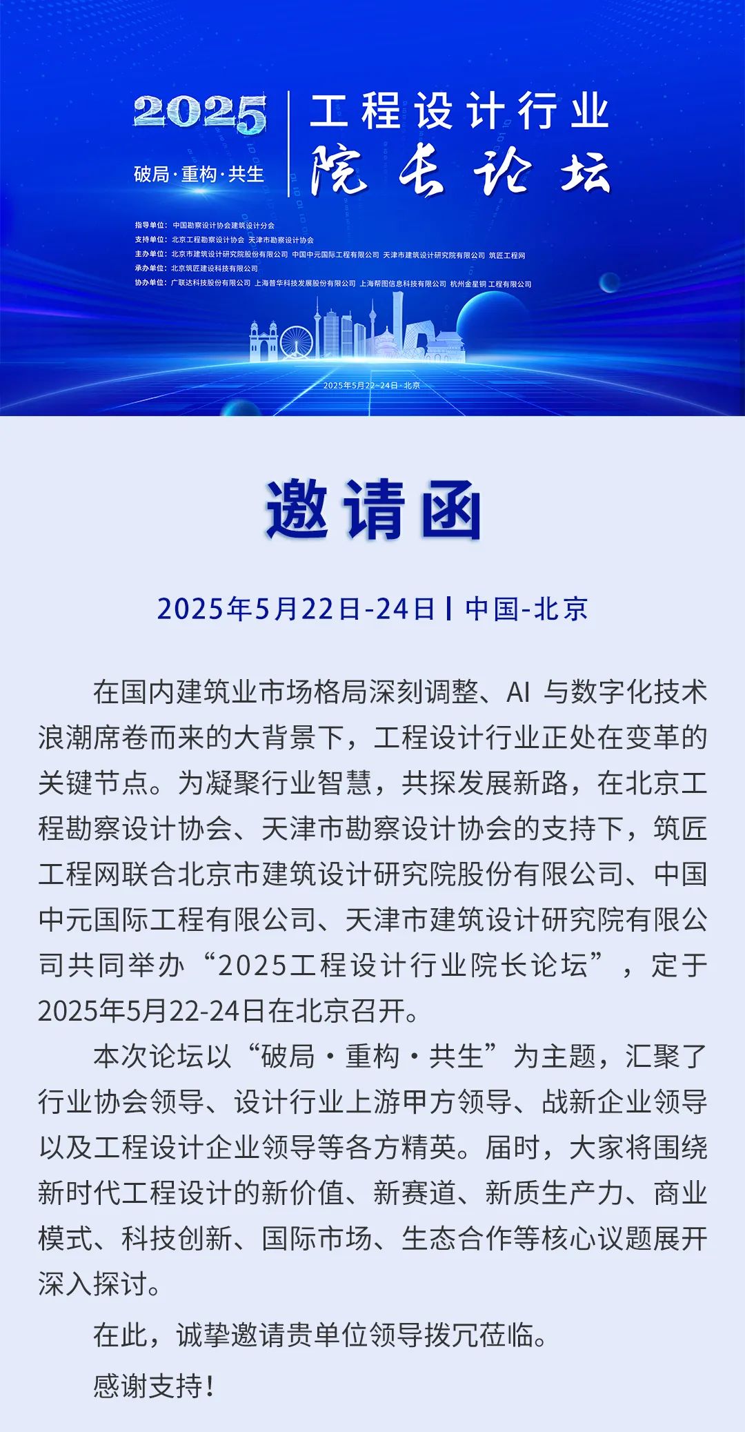 轉發 | 邀請函 ——2025工程設計行業院長論壇5月22-24日在京召開