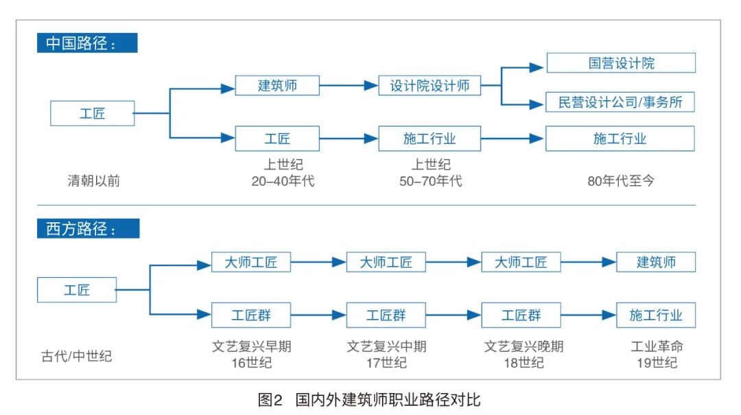 誰能確保項目成功交付?這不是一個商務問題,而是一個技術問題。在建設過程各參與方中,建筑師是受過系統訓練的專業人士,專業的人應該做專業的事。建筑項目是否滿足甲方的要求,依賴于建筑師對甲方需求的充分理解和百分百落實。而在項目執行中,推行建筑師負責制就是要求建筑師對項目成果與甲方需求的符合性負責到底,從而確保項目成功交付。關于建筑師們有沒有作為領導(Leader)組建并帶領團隊向市場成功交付項目的能力,曾一度成為業內討論和爭議的焦點話題。過去70多年,由于建筑行業管理體制和上位法的原因,中國建筑師們被“隔離”在建設項目實施的大部分過程之外,失去了參與除設計以外的大多數建設過程的機會。工作內容和業務范圍壓縮,限制了建筑師專業經驗的積累和職業能力的成長,也在行業里形成了建筑師“只負責畫圖、不問交付結果”的現象,更造成了很多設計企業內建筑專業被逐漸邊緣化的問題。但是,建筑師畢竟是建筑行業中唯一集藝術創作與項目管理才能于一身的“天之驕子”,有著與生俱來的創新思想和開拓意識,所缺少的不過是歷練的機會和成長的土壤(圖2)。