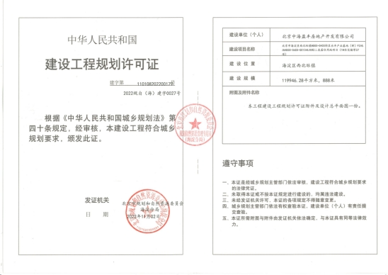 2022年11月2日取得建設工程規劃許可證【建字110108202200179號2022規自(海)建字0027號】