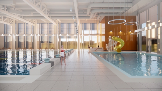 項目位于北京城市副中心行政辦公區南側。潞城全民健身中心定位為組團級公共體育設施,以滿足周邊辦公人員及半徑3公里內群眾日常健身休閑、文體活動需求為導向,功能豐富、設項齊全、硬件標準高,以優質的運動健身及配套服務滿足群眾一站式體育健身休閑需求,同時兼顧街區運動會及副中心機關單位舉辦職工運動會的場地需求。包括全民健身館、籃球館、游泳館、網球館、羽毛球館、乒乓球館、滑冰館等體育功能用房以及配套的車庫和設備用房。室外場地包括田徑場、籃球場、網球場、器械健身場地、5人制、7人制足球場等體育設施。采用工程總承包(EPC)+建筑師負責制。