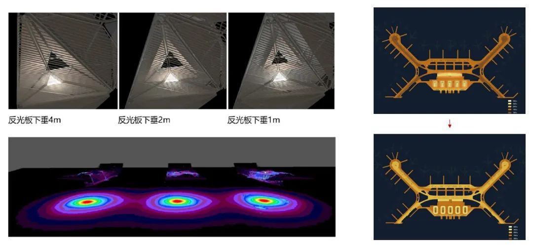 設計過程中我們還利用BIM模型模擬優化了屋面系統的雨水排放和收集。通過模擬光環境,計算屋面天窗的數量,改善室內光環境。通過中央采光帶和三角形點式天窗的自然采光,減少日間照明的能耗。通過對夜間照明的模擬,改善燈具的設計,達到節約能耗的目的。這一系列與自然融合的設計,充分體現了??赥2“綠色機場”的設計理念。目前??跈C場也已經獲得綠建三星的設計標識證書。▲ 圖1優化雨水排放和收集、圖2改善室內光環境、圖3優化室內照明設計(左右滑動可查看更多)