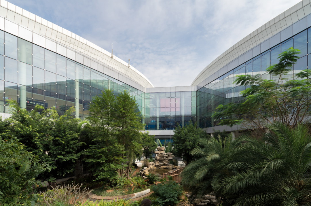 為了設置更為充足的商業區,并保證商業區的活力,我們進行了大膽的嘗試。擴大主樓的進深,在主樓中央設置一條空側商業主軸線,軸線上方設置中央采光帶。采光帶與指廊天窗貫通,聯系四條指廊,結合東西室外庭院,為旅客提供了空間豐富、景觀宜人的出行體驗,體現了以人為本的設計理念。