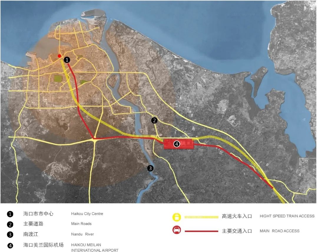 海口美蘭國際機場距??谑袇^直線距離約15km,是國內大型機場和區域樞紐機場。伴隨著海南國際旅游島的國家戰略以及經濟發展的需求,??跈C場現有規模已經難以滿足使用需求。2015年6月,國家發改委批復:??诿捞m國際機場二期擴建工程按照本期2025年旅客吞吐量3500萬人次,遠期2040年旅客吞吐量6200萬人次的目標設計。