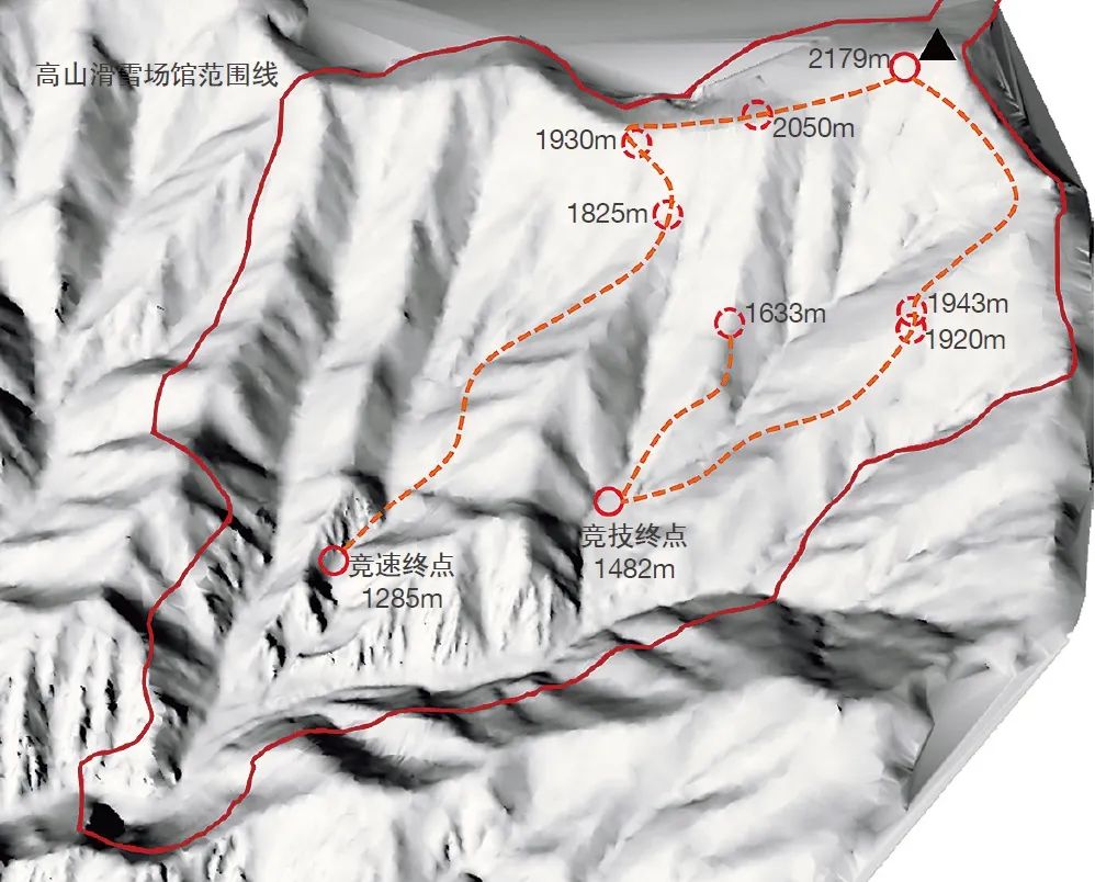 高山滑雪作為“冬奧會皇冠上的明珠”,追求技術、勇氣、速度、冒險、判斷力及身體素質的高度展現,是速度與技巧的完美結合,為世界廣大滑雪愛好者所矚目。新建的國家高山滑雪中心為我國高山滑雪運動創造了一個高等級的比賽與訓練場所。設計基于復雜山地條件建立的多專業密切配合、與山地環境契合的系統性工作回應了雪上運動和奧運賽事的復合需求,積累了在面向高水平高山滑雪賽事場館規劃建筑設計方面的關鍵技術,為中國雪上運動發展和場館設計提供了經驗借鑒。注釋