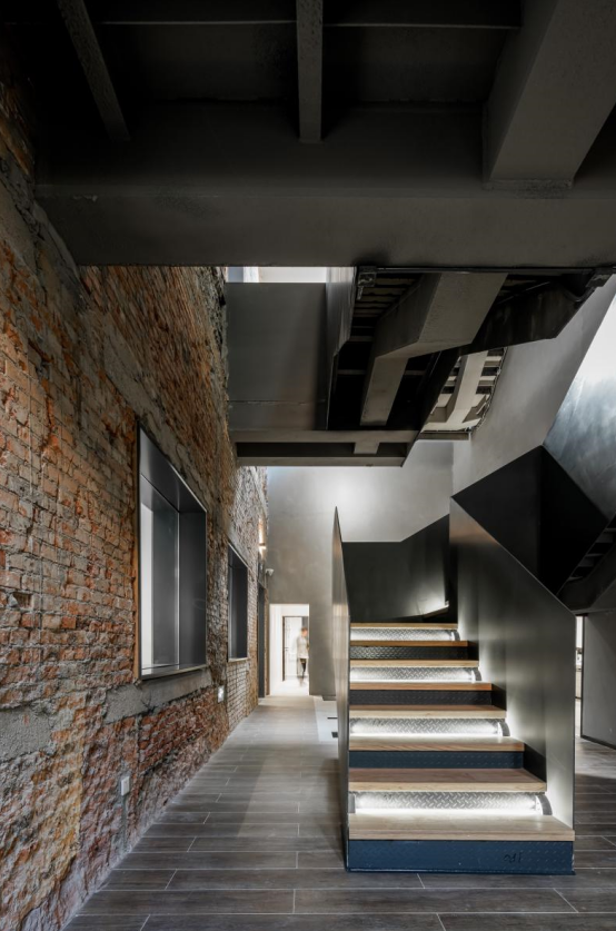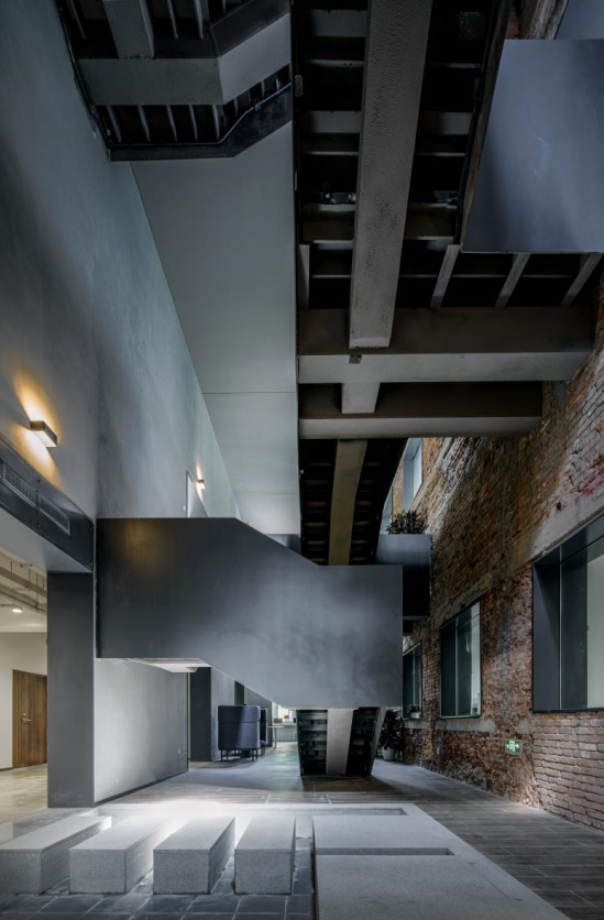 室內(nèi)整體裝飾盡可能多的展示出建筑改造的新舊對(duì)比,并未追求過(guò)多的表面裝飾,整體原則以展示原本建筑和材料的真實(shí)屬性為主,局部通過(guò)新舊材料的對(duì)比形成強(qiáng)烈的反差,制造了一定的戲劇性。